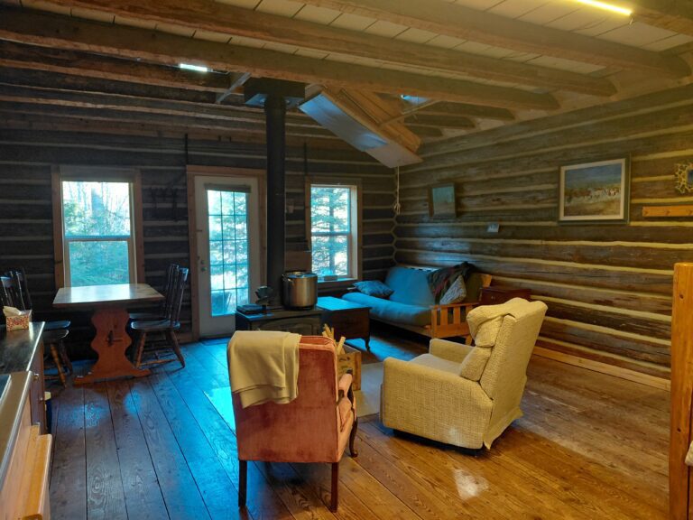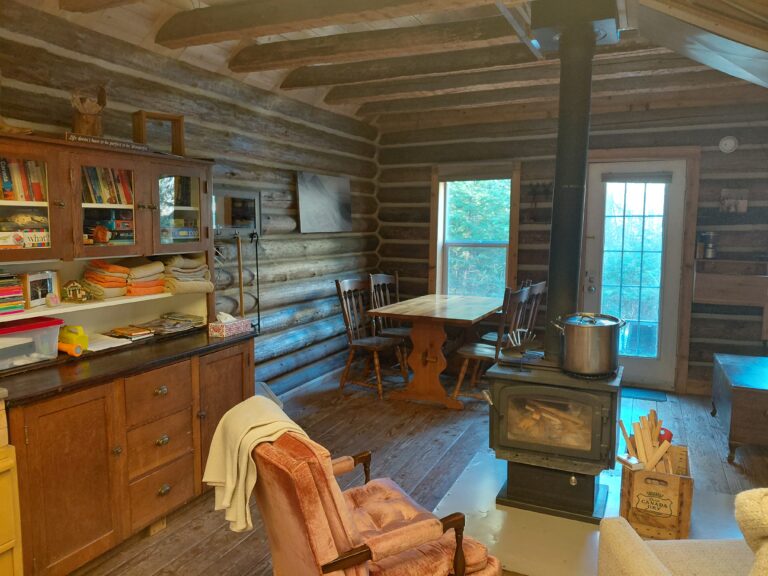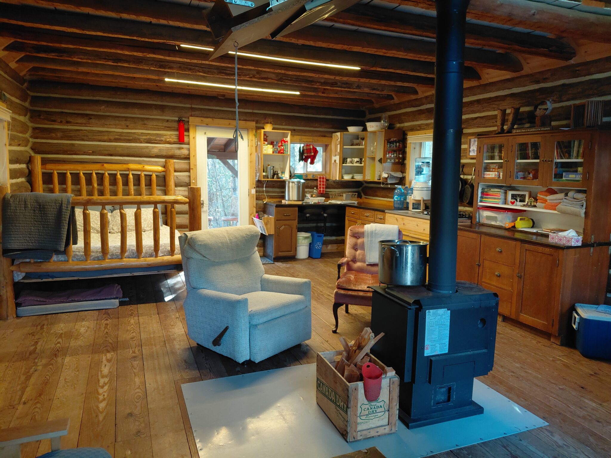 This is a unique space for up to 6 guests. The cabin is off-grid but has solar lights and a USB, 12V, 120V charging station for your mobile devices. Heat is wood stove and cooking is on a propane stove. There is no plumbing so the toilet is an outhouse. There is a sink for washing with a drain, but no running water. We will provide jugs of water for use. Thee is also a hand pump for use in the summer for washing water All bedding and kitchen amenities are supplied. There is a cooler for your perishable foods. This space is perfect for couples, friends, quiet gatherings, solo travellers and families with older children (not recommended for toddlers or young children due to wood stove and stairs/loft).